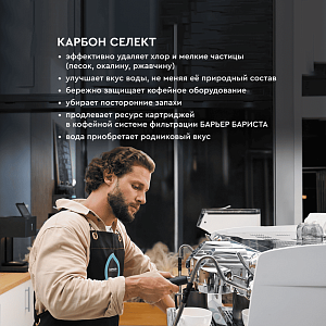 После системы Карбон Селект рекомендуем установить систему подготовки воды БАРЬЕР БАРИСТА, которая обеспечит оптимальный уровень жесткости воды (50-150 ррм общего минерализационного состава) для вкусного и ароматного кофе в вашей кофейне.