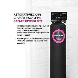 Автоматический блок управления БАРЬЕР ПРО100 ФТ1 для контроля за процессом промывки фильтрующего материала в системах осветления, обезжелезивания и сорбционной очистки воды. Используется в составе комплексного решения с системой аэрации БАРЬЕР, совместим со всеми колоннами с диаметром подключения 2,5”.