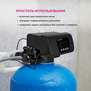 БАРЬЕР ПРО110 В1 позволяет настроить необходимый режим регенерации фильтров по объему очищенной воды или по расписанию за счет встроенного контроллера с расходомером воды и таймером.