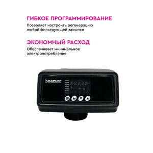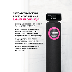 БАРЬЕР ПРО110 В3/4 позволяет настроить необходимый режим регенерации фильтров по объему очищенной воды или по расписанию за счет встроенного контроллера с расходомером воды и таймером.
