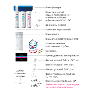 Для работы насоса необходимо наличие розетки в зоне установки фильтра. Использование электрических удлинителей в пространстве под мойкой запрещается.