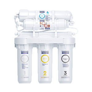 Пятиступенчатый фильтр обратного осмоса в корпусе классического исполнения с картриджами стандарта Slim Line 10, без крана в комплекте. Подойдет для тех, кто создает индивидуальный дизайн кухни и выбирает смеситель самостоятельно. Вода проходит 5 этапов очистки, включая обратноосмотическую мембрану. Тонкопленочный полиамидный композит, из которого изготовлена мембрана, очищает воду на молекулярном уровне до 100%, задерживая всевозможные примеси, включая бактерии и вирусы. Вода после фильтра обратного осмоса не уступает по качеству бутилированной. Показатели после фильтрации: общая минерализация — до 50 ppm, pH в диапазоне 6-9. Показатель минерализации может варьироваться в зависимости от условий эксплуатации и водопотребления.