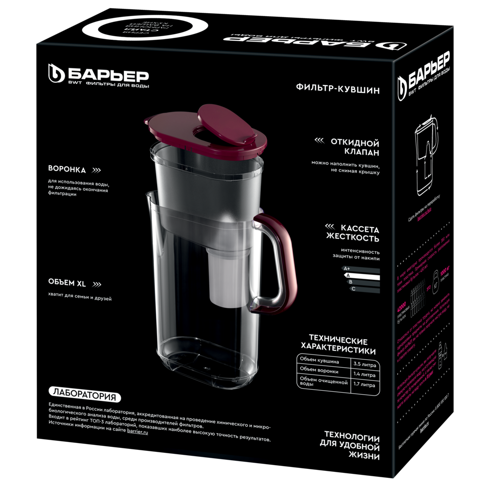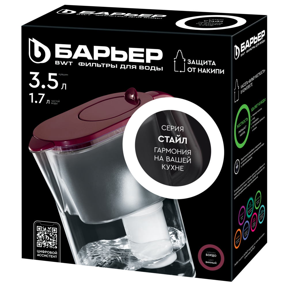 Стильный дизайн, новый изысканный цвет и удобство — все это вместительный фильтр-кувшин Бордо...