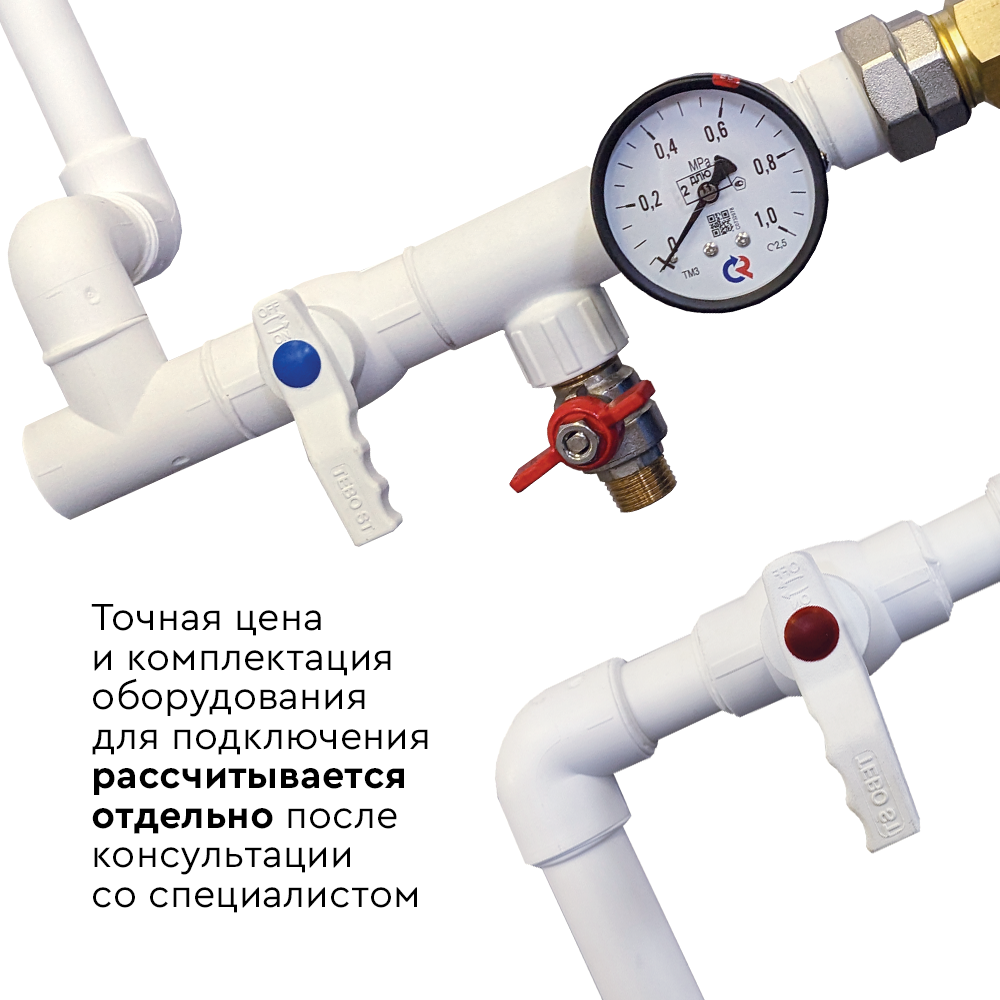 В комплект входят защитные термочехлы от конденсата на каждый корпус фильтров в комплекте для избежания появления луж и влажности, которая может вызвать рост плесени в помещениях, где будет установлена коттеджная система. Появление конденсата обусловлено разницей температуры холодной воды из скважины/колодца и теплого помещения, а также влажности внутри помещения.