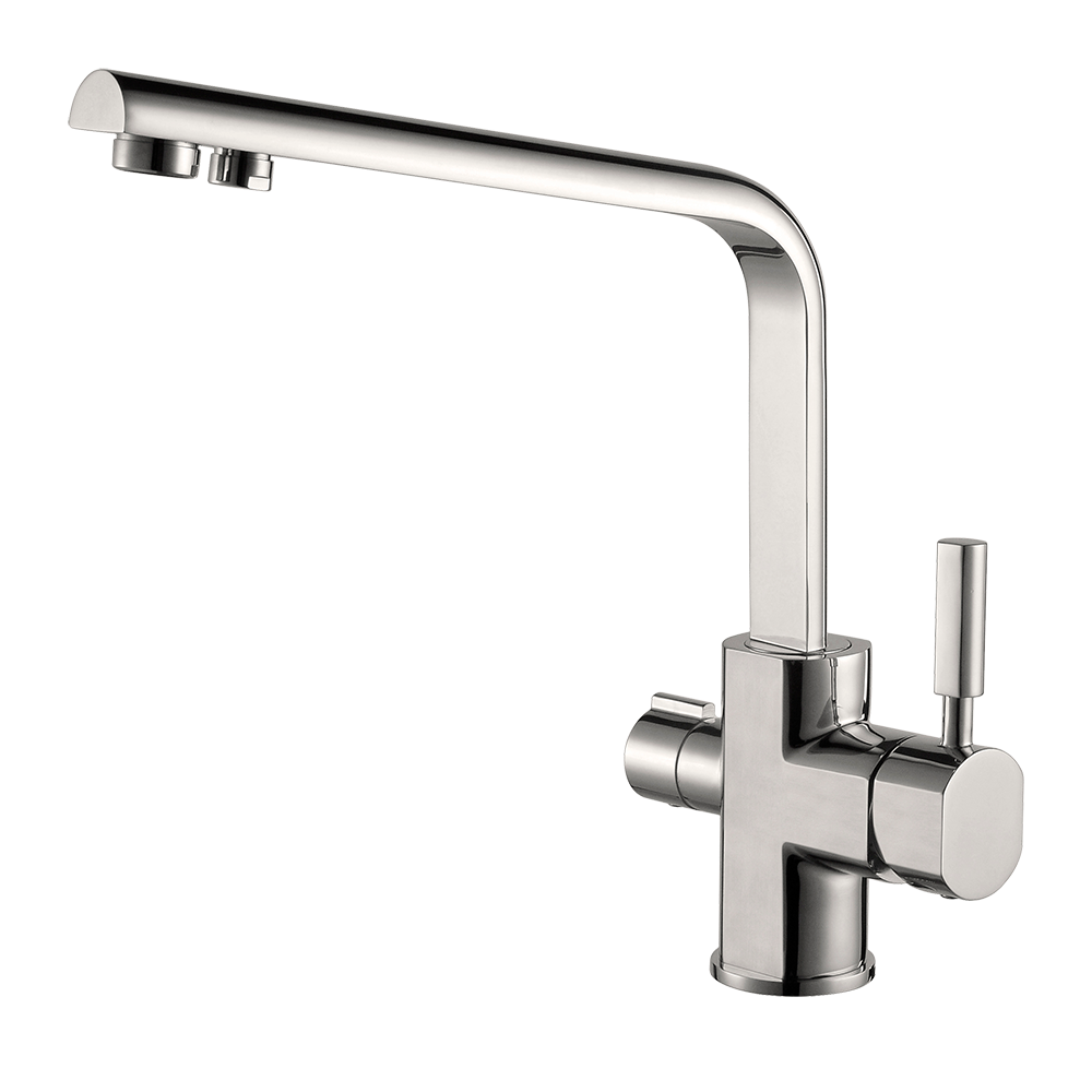 Смеситель Kaiser Decor с подключением под фильтр. Для подачи питьевой воды на корпусе смесителя размещен рычаг. Смеситель имеет два аэратора для раздельного выхода проточной и фильтрованной воды, что исключает их смешивания. Преимущество совмещенных смесителей заключается в том, что не нужно делать дополнительных отверстий на мойке и устанавливать отдельный кран для питьевой воды.