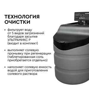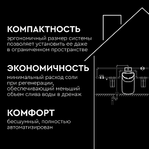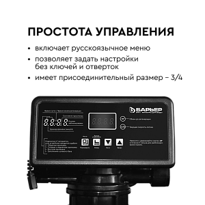 КАБИНЕТ БАРЬЕР 1017 СX это удобная и понятная в использовании система, которая регулирует процессы фильтрации и регенерации автоматически, с помощью блока управления. Система не требует замены фильтрующей засыпки и ее промывки опасными кислотами на протяжении срока эксплуатации (срок службы до 5 лет, в зависимости от качества исходной воды), необходимо только периодически досыпать таблетированную соль.