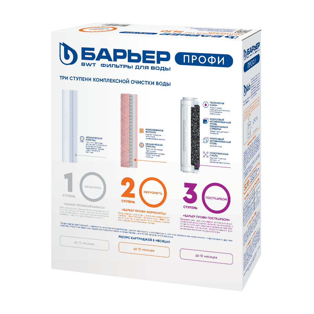 Сменные картриджи для проточного фильтра БАРЬЕР стандарта Slim Line 10 (SL10) подходят к любой проточной системе БАРЬЕР ПРОФИ. Комплект сменных картриджей БАРЬЕР ПРОФИ Железо отлично справляется как с растворенным, так и коллоидным железом и оставляет вам только чистую вкусную воду. Производительность — 2 л/мин, ресурс — 10 000 литров.