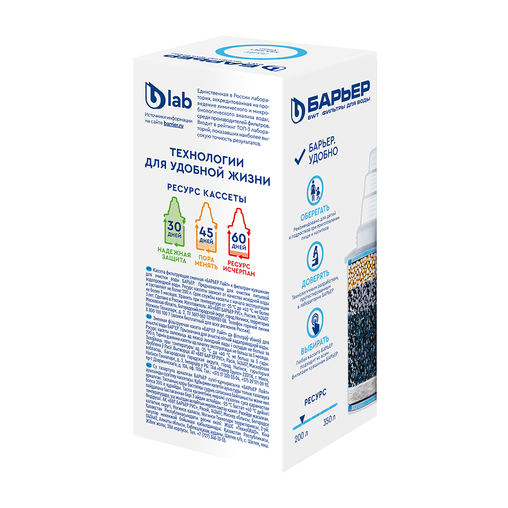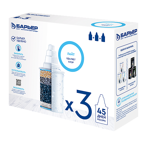 Выгоднее бутилированной воды в 15 раз, 1 кассета заменяет 200 пластиковых бутылок. Ресурс кассеты 200 литров - 45 дней с чистой водой. Подходит к любому кувшину БАРЬЕР